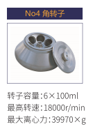 No4 | 角轉(zhuǎn)子 | 6x100 ml | 18000 r/min | 39970xg |