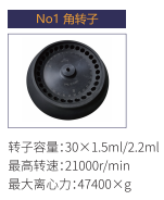 No1 | 角轉(zhuǎn)子 | 30x1.5ml/2.2 ml | 21000 r/min | 47400xg |