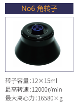 No6 | 角轉(zhuǎn)子 | 12x15ml | 12000 r/min | 16580xg |