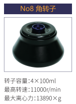 No8 | 角轉(zhuǎn)子 | 4x100 ml | 11000 r/min | 13890xg |